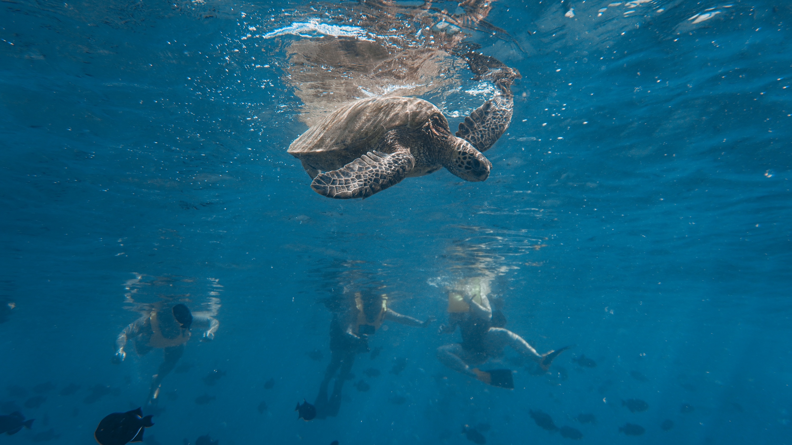 今日も日本からたくさんのお客さまがご参加下さいました。風も強く、波も荒かった中、たくさんの子供達もがんばって泳いでくれました。何と全員ゴーグルを持参してきてくれたの!子供達のゴーグル最高です!絶対に持参されます事をおすすめします。みんな必死に私のボードにつかまってくれて、最初は恐る恐る顔を海に付けていたけれど、だんだんに慣れてきて、カメ〜!!ここにおる〜!!と、感動の一声が出た〜!そうそう、ビックボスにも会えたの♡ 迫力、貫禄、やっぱり、帝王だわ〜って感じ。お客さまも、あの大きさとダイナミックさに驚かれ、大感激して下さいました。帰りがけには、イルカ達にも会えて、来てよかった〜!と仰って下さったお客さま皆さま、本当にどうもありがとうございました。亀大学超最高です!