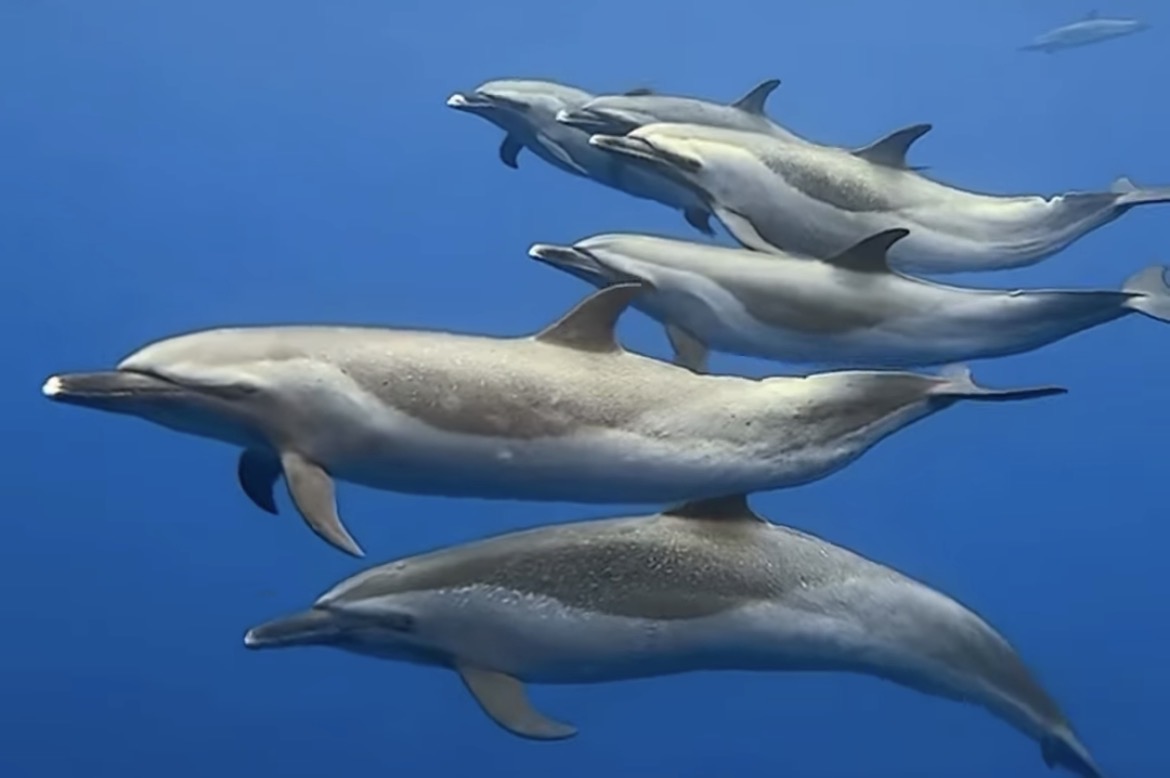 雄大な景色の中を泳ぐイルカ達は可愛いけど、なんか神々しくも感じられます。