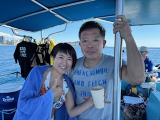 泳ぎが得意ではないので、ガイドのマキさんのボードにつかまり、熱帯魚もカメもたくさん見られました。水面に上がってきたカメを、目の前で見られて、特にカメの横顔がとっても可愛かったです。本当にどうもありがとうございました。マハロ!